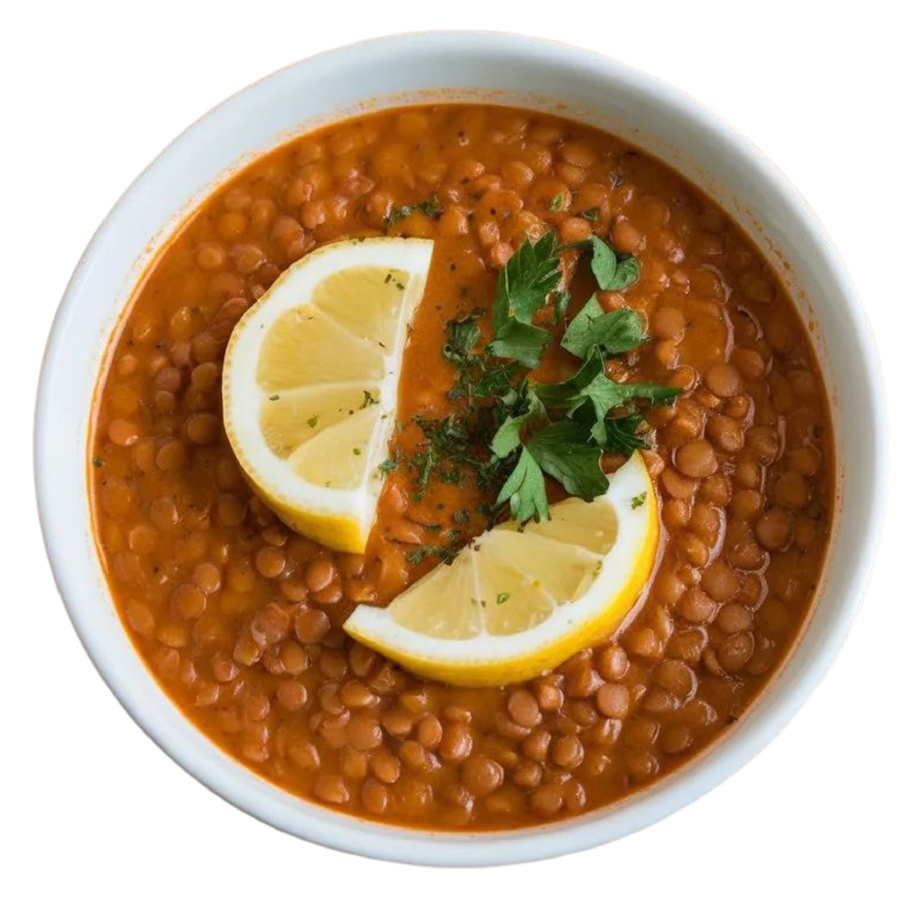 Soupe traditionnelle aux lentilles, mijotée avec soin. Un bol riche et savoureux, idéal pour se réchauffer.