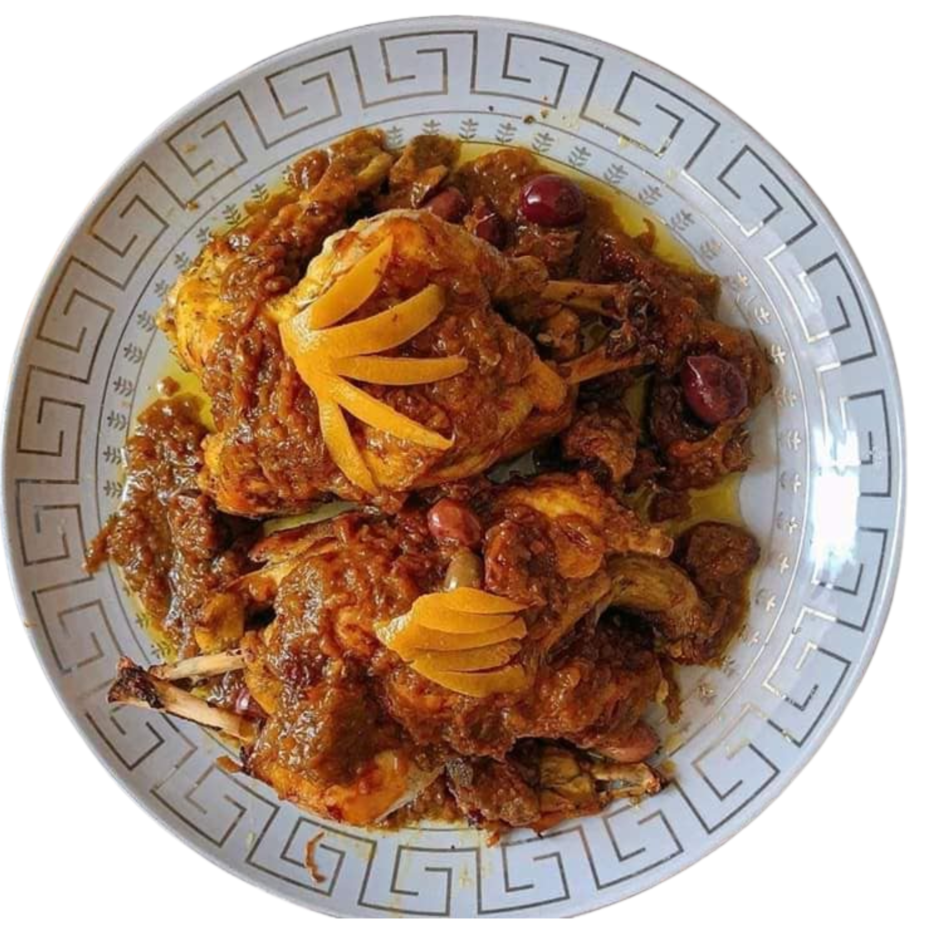 Cuisses mhamer rôties, accompagnées de pommes de terre fondantes. Un plat généreux et savoureux, typique de la cuisine algérienne.